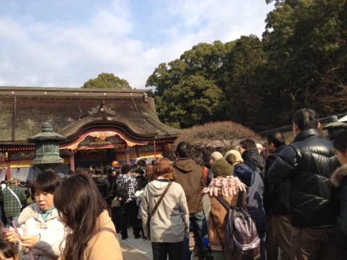 2013 新年、あけましておめでとうございます。 今日のブログのタイトルが思い浮かばず年甲斐もなくめっちゃ軽いノリになってしまいました。こげな私ですが今年も宜しくお願いします。 さてさて。今日は 娘ちゃん と福岡の初詣のメッカ太宰府天満宮 へ初詣に行ってきました。11時過ぎに到着。本殿は参拝客で長蛇の列。近くでの参拝は諦めて、遠くからお参り。近いからいつでも来れるし、ちょくちょく来るしね。また改めて来るね、道真さん。参道もまっすぐ歩けないほどの混み様。奇跡的に空きスペースができた瞬間にパチリ。晴れたり、曇ったり、小雨が降ったりの不安定なお天気。青空の中、佇む だざいふえん。古くからある低年齢向けの遊園地で ちかりーぬ も 娘ちゃん も小さい頃遊んだ場所です。中央のゲートが閉じられいるため閉鎖されているように見えますが、がっちり営業していました。もっとウェルカムな感じにしたら入りやすいのになあ。 本殿の裏にもたくさん由緒ある建物や史跡があります。 ← 梅の種 納め所梅干の種を割ると、白い実が出てきます。これを天神様と呼ぶようになり、粗末にしてはならないと納め所が作られたそうです。 ← 相輪塔 最澄が伝えたという建造物。日本に8基しかないうちの1基らしい。(案内版より) コンデンスミルク缶の絵のような愛くるしい牛くん。もちろんなでくりまわしました。 ← くすの木千年 の歌碑「くすの木千年 さらに 今年の若葉なり」荻原井泉水(おぎわらせんせんすい) 楠から樟脳(しょうのう)ができることは有名ですよね。樟脳の香り、私は大好きなのですが臭いという人もあり、なかなかよさを伝えることができません。年末に日本で唯一の樟脳工場の 内野樟脳 の特番が放送されていてかねてから気になっていた工場だったのでクローズアップされてとても嬉しいです。天然樟脳 - | 内野樟脳 | スサノオの眉毛が楠になったというのもこの特番で知りました。ちなみに 髭は杉に、胸毛は檜に、尻毛は槙なったそうです。腋毛や脛毛でなくなぜ尻毛なのかは神話のベールで隠された謎なのであろう。 筆塚や包丁塚もあります。 お石トンネルで有名な お石茶屋 をすぎると天開稲荷 があります。普段はほとんど人を見かけたことがありませんがお正月ということもあって沢山の方が参拝に訪れていました。 そして。今年の干支 蛇の置物。 右のは陶器で頭が金色に光っておるとこが愛らしく気に入りました。んでもって問題作の左側の蛇。蛇なのに手があるやん!!思わず店先で 娘ちゃん とツッコんでしまうほど当然のような両手感。蛇でありたいのか、ありたくないのか生き物としてのアイデンティティを問う作品ですね。 今年はこの2体が玄関でお出迎えしてくれます。にほんブログ村ああ、急がねば元日が終わる!!