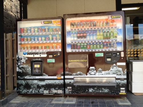 さてさて、1月25日 銘菓ひよ子 でゲットしたバスハイクの続きです。 お城の中の自販機。自販機もキャッスルだぜぇ~~ 宇土櫓から本丸・天守閣方面に向かう途中熊本おもてなし武将隊 の忍者に遭遇。熊本城おもてなし武将隊|公式ホームページ 「 拙者、茶を飲みに行く途中でござるよ。 」と、言いながらも立ち止まってポーズとってくれました。「 おもてなし武将隊 の忍者とはなかなか出会えないので会えたらラッキーですよ! 」 と バスガイドさんが事前に教えてくれていたのですかさずパチリ。 天守閣への入り口。なんだか物々しいですね。天守閣の中は歴史上の史料などが各階に展示されており5階建てでものんびり登れました。 復元され平成20年から一般公開が始まった 本丸御殿。まるで大奥の世界。 上様のおな~~~り~~~~~。 煌びやかな 昭君之間。天井には四季折々の花や草木が描かれています。 昭君之間 近くの欄間。光があたると、反対側の壁には花模様がうかびあがります。熊本城のゆるキャラ 「 ひご丸くん 」ベンチ。熊本城をバックに ひご丸くん とツーショットが撮れるという按配。 駆け足で回ったものの、やはり80分ではこれが限界。ギリギリの時間にバスに到着しました。 最後に玉名温泉 つかさの湯。ここも80分とう時間。悩んだあげく洗髪してしまったので、あまりゆっくりは浸かれず。 帰路のバス中は、綾小路きみまろのDVDで爆笑しながらいつのまにか爆睡だったさ~。にほんブログ村
