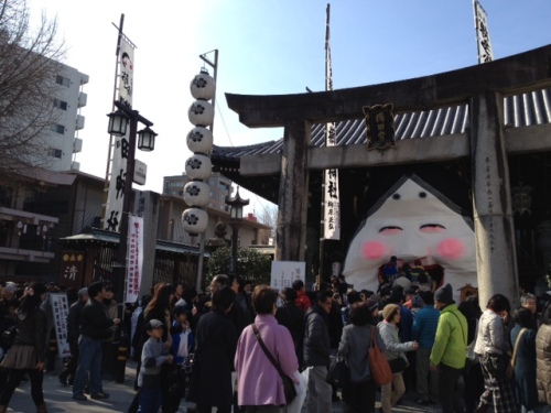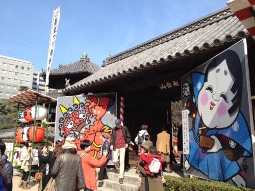 昨日、2月3日は全国的に節分。祭り好きの ちかりーぬ 、もちろん行ってきましたばい!! まずは櫛田神社。ちょうど日曜日だったこともあり正門のおたふく面の前には道路にはみ出るほどの参拝客。 この日は、博多座で二月歌舞伎で来福されている中村勘九郎さん と 中村七之助さん が豆まきに参加。ちかりーぬ は、ちょっち寝坊したため、11時過ぎに到着。お二人を見ることができず。 残念。 おたふくの口 に、吸い込まれるように人が入っていきます。シュールだなあ。 なかなかリアルな 赤鬼 と 青鬼。こんな鬼がいたんですね~。前回行ったときは気づきませんでした。今年が初めてなのかな? どうだろ。 ちなみに 青鬼 ですが 緑色ですよね。「 青鬼 じゃなくて、緑鬼 じゃん!」なんて突っ込まないでくださいね。昔、日本人は、緑も青も 青 と表現していたので 緑色でも 青鬼 と呼ぶんです。種田山頭火 も 「 ビルとビルとのすきまから見えて山の青さよ 」と 詠んでいます。どこもかしこも大賑わい。お正月のような混みようです。参拝も福引も諦めて、櫛田を出ます。 南神門 (川端商店街側) から出ます。南神門のおたふく の前の人だかりもさることながら櫛田の焼餅 にも行列が並んでいました。 にほんブログ村東長寺編に続きます。
