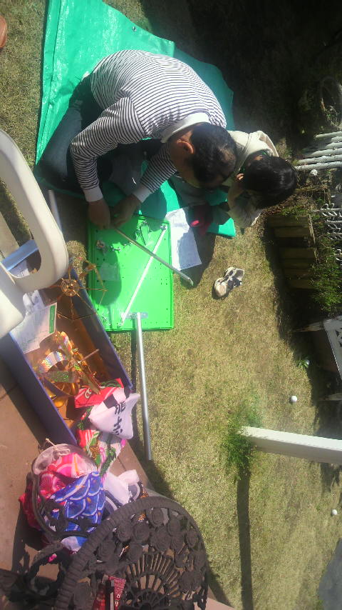 こどもの日の準備をしました いとこのリュウボンの鯉のぼり >゜))彡 >゜))彡 &…
