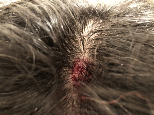 なんか、やばい写真に見えたらスミマセン('◇')ゞ手を洗い終わって、鏡を見ようとしたら・・・・・・・髪の間から赤いものが見えてなんだろうって(。´・ω・)?よく見たら血だ!?((+_+)) って自分も驚いたけど・・・・・おそらく、朝、髪をとかすときに櫛か爪が刺さったみたい(;'∀')