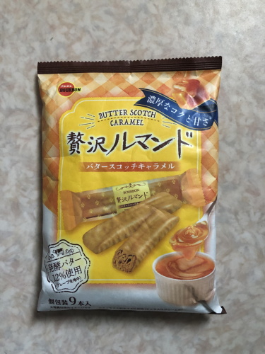 ブルボン 贅沢ルマンド バタースコッチキャラメルさっくりした食感がいい昔からあるルマンド贅沢ルマンドは普通のより太くて大きい味もいいって感じのだけど塩とかキャラメルとかってもう判りやすい味だしどこかわざとらしいというかねらいすぎというかそんなんであまりめったにはキャラメル風味とか塩風味とか買わないけどたまに買ってみたまあ、やっぱ想像通りだけどまあ、これはこれでキャラメルの風味がおいしくなってるのはわかる内容量は9本しかないけど一つのサイズが大きくてキャラメルという味があるから結構、満足できる量かも5点中 3.8点