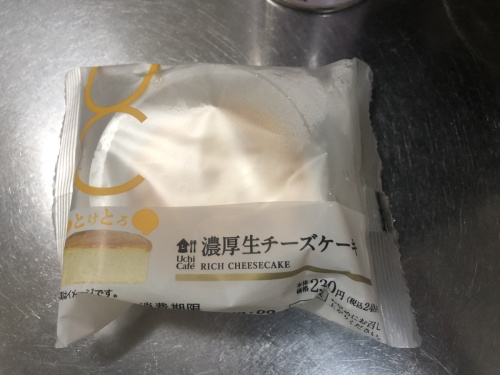 ローソン うちカフェ 濃厚生チーズケーキこの前、ゴディバコラボの生どらショコラを食べたけど普通のうちかふぇは久しぶりかなまあ、全体的に普通かなぁ味も特にチーズが他よりもコクがあるかというのもないし味的にも特に変わったとこがない生チーズケーキということからかちょっと水分多すぎなようなやっぱ、どちらかというとねっとりとしてるほうが濃厚って感じが増すので水分を減らしたほうがいいと思うな5点中 3.5点