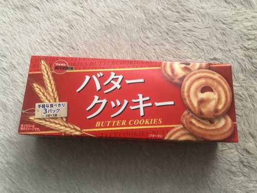 ブルボン バタークッキーなんとなく久々のバタークッキー近くのイオンはよさげな国内メーカーのはこれだけかって感じで久々のブルボンのクッキーなので箱のサイズからよく見ないで買うと内容量にちょっと驚くこれで3枚1パックにして全部で3パックで合計9枚だけ・・・・・ミスターイトウなら15枚入ってたっぷり味わって楽しめるけど・・・・・これじゃ、シェアできる量じゃないねぇ・・・・・ちょっと少ないなぁ量より質とか質より量とかよりバランスとってほしいなぁ味はバタークッキーなのでコクがある良い風味が楽しめて優しいサクサク食感でおいしいよ形が変わっていて丸く穴が開いてる分材料が減らせてるから枚数は増やせそうな気がするけど・・・・・枚数が残念だから5点中 3.6点