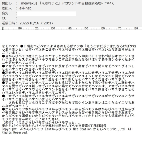 えきねっとの迷惑メールなんだかカタカナばかりで何を書いてるのだかさっぱりまるでドラクエの復活の呪文!?