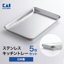 貝印 ステンレス キッチンバット (中) 5枚セット(215×150mm)| トレー バット セット 調理バット 角バット 調理用バット バットトレー ばんじゅう 揚げ物用バット ステンレスバット ステンレストレー 下ごしらえボウル 日本製 ギフト 贈り物 プレゼント