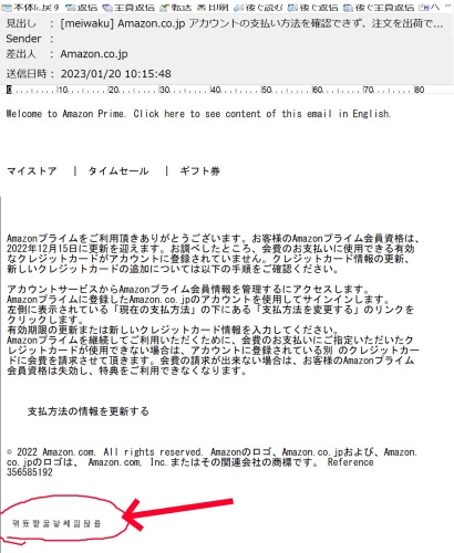 使ってるプロバイダは使えない!?だいぶ前から、自分が利用してるプロバイダは自動的にフィッシング類のメールならsubjectの先頭に[meiwaku]ってつけるようになったけどさ差出のメアドがAmazonだよで内容はETCだよ・・・・・でフィッシングでもスパムでもないってなにその判定基準!?