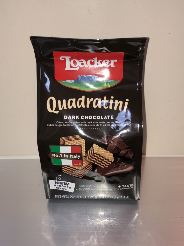 ロアカー クワドラティーニ ダークチョコ昨日はレモンだけど今日は甘さ控えめ?ダークチョコで。。。。。甘さ控えめといってもチョコがいい味してるからそしてサクサクウェハースレモンもおいしくてちょいちょいと食べちゃう感じだけどダークだけどやっぱチョコだからレモンよりも口に運ぶペースが早くて・・・・・・やっぱ、チョコはおいしいぃ★★★★☆星4つ!