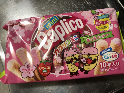 グリコ カプリコ ミニ さくらパーティーなんか食べてみたくなって・・・・さくら風味のカプリコは桜の葉を塩漬けにしたようなちょっと塩気のある味になって桜の葉の風味と合わさった感じはこの時期ならでわの季節感が出ている味だなぁ★★★☆☆