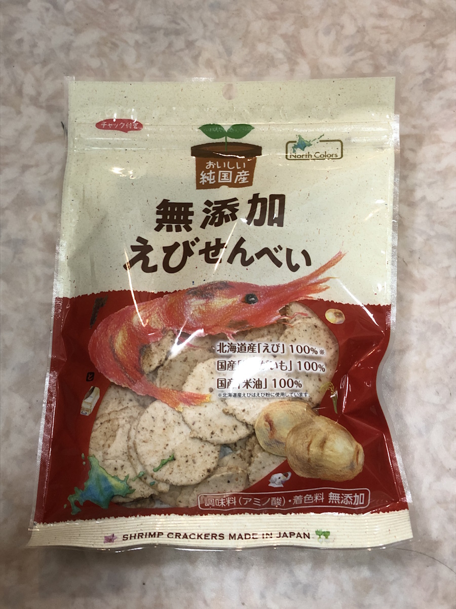 ノースカラーズ 無添加 えびせんべい久々のノースカラーズふとえびせんが目に留まって買ってみたこういう和菓子的なのってあまり食べてなかったけどなんとなくえびせんべいもいろいろなのがあっていろんな地域でお土産みたいなかんじで売れてるものもあるけど多くは えびせんといえばあんな感じのにおいとかふうみとか・・・・と比べるとこのえびせんべいは無添加なのでちょっとよくあるものとは違ってかなり磯臭い!?て感じで海産物のそういう風味が苦手で食べられないという人にはちょっとだめかもしれないけど問題なく食べられる人なら逆にホントの無添加のエビせんべいってこういう風味になるんだなぁってのが感じられるかも自分は嫌いって程じゃないけどやっぱ、最初の一口目は随分と風味がきついかなってでもこれこそ噛めば噛むほど後からうまみがわいてくる感じでおいしいので結局、食べだしたら止まらない感じでなかなかおいしいサイズも一枚が食べやすいサイズでいい感じ★★★☆☆