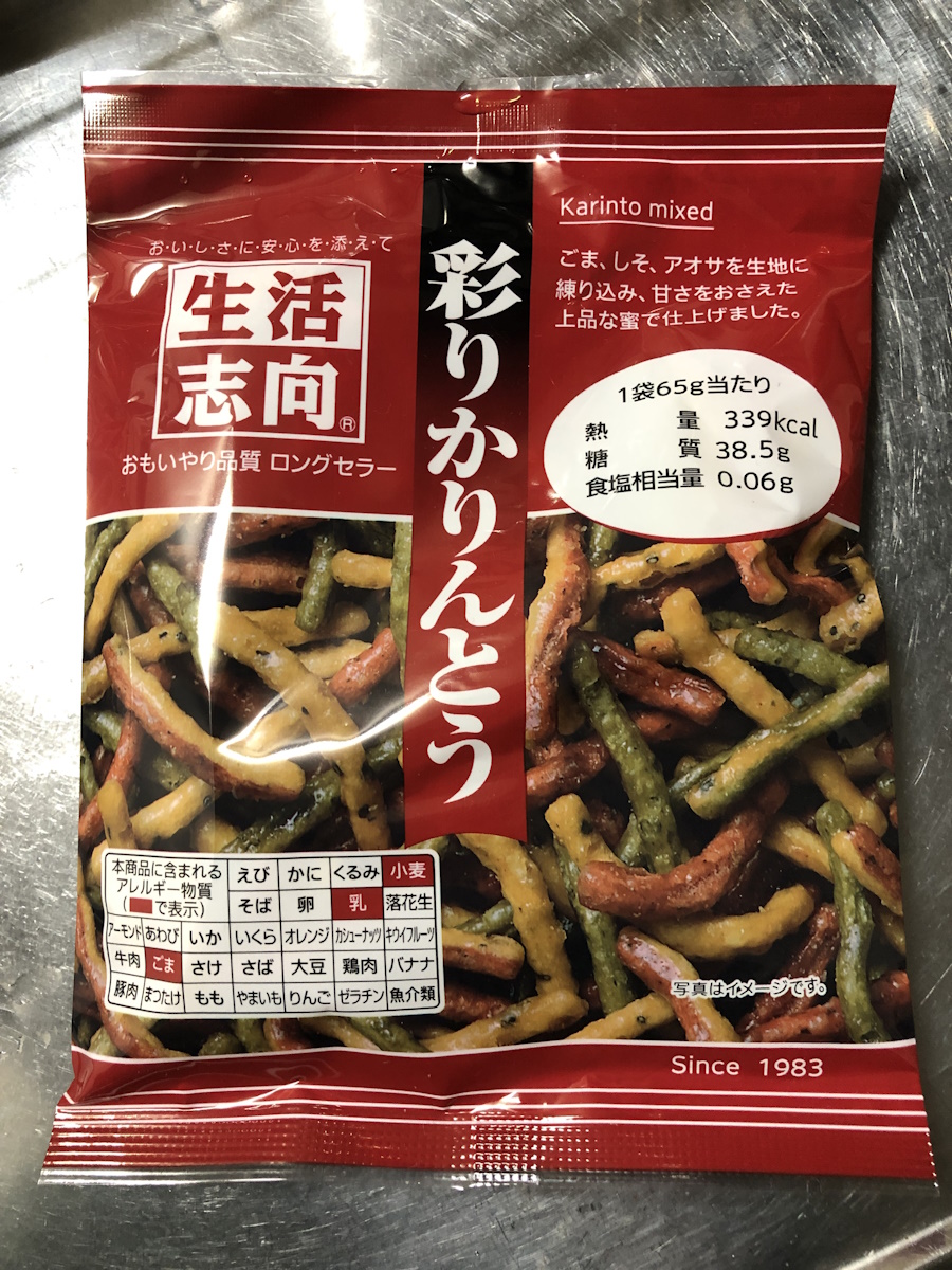 三菱食品 生活志向 彩かりんとう生活志向って初めてかもしれないどこが売ってるのかと見たら三菱食品って三菱と付けば!?三菱なの?って、三菱鉛筆は実は大手三菱とは関係ないけどこの三菱食品は三菱商事傘下なので一応、三菱グループの一員のようだけど生活志向は、低価格を売りになじみのあるお菓子をラインナップしていていろいろあるようだけど低価格の均一商品というだけあってちょいと内容量が物足りなさを感じるけど、風味も食感もそれなりによくできていておいしいそんなに悪いところはなさそうだけど唯一、やっぱ一つ一つもちょっと小さく食べだしたらあっという間になくなっちゃう少なさは物足りない感じ★★★☆☆