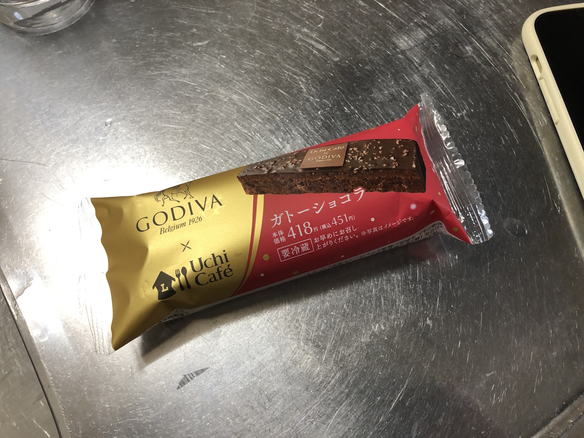 ローソン うちカフェ×GODIVA ガトーショコラ久々にうちカフェ×GODIVAなのを買ってみたけど、ほぼ最近は同じようなやつの繰り返しで想像がつくけどカカオの風味がしっかりと濃いめな味のチョコはいつも通りで食感もいつも通りのいい感じでおいしいいつも通りこの形のスイーツはワンハンドで食べられるように透明トレイの先端が曲げやすいようになってる★★★☆☆