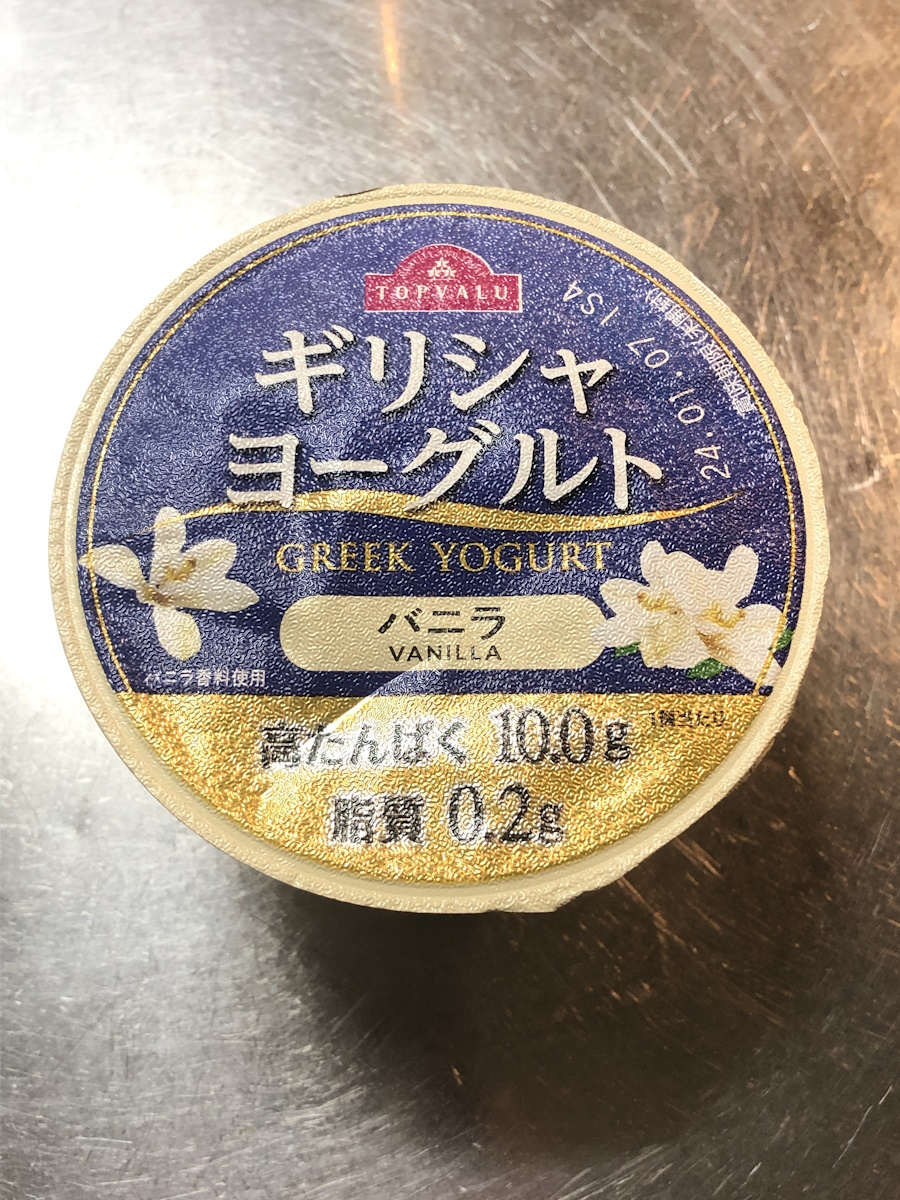 トップバリュ ギリシャヨーグルト バニラギリシャヨーグルトって?って感じだけど元来は羊、ヤギの乳で作った水分の少ないヨーグルト今どきの言うギリシャヨーグルトは普通のヨーグルトよりホエーが少ないものを指すらしいけどトップバリュのってなにか違うかなって食べてみたけどバニラ味というのもあってかそんなに他と違わないかな★★★☆☆