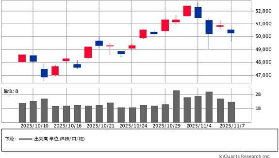 信用残(10/31)買い35億3257万株(+969万株)/4兆5026億円(+647億円)売り3億6971万株(-3399万株)/9503億円(-249億円)信用倍率4.74(+0.19)裁定残(10/31)買い8億8105万株(+2831万株)売り72万株(±0)騰落レシオ98.56(+2.79)サイコロ25日乖離NT15.36(-0.2)値上がり420値下がり1145変わらず50RSI56.2(-12.83)ストキャス31.96(-22.98)JGB136.1(-3.77)VI36.61(+3.95)空売り比率39.8(-1.4)PCレシオPER17.79(-0.22)PBR1.67(-0.02)配当利回り1.77(+0.01)堂島コメ平均36500(-250)日経平均株価 50212.27(-1284.93)https://finance.yahoo.co.jp/news/detail/9ee0871de53a615a3391f0b5bf4d2c64b5044a64値上がり銘柄数 76(寄与度+240.04)値下がり銘柄数 148(寄与度-1524.97)変わらず銘柄数 1○値上がり上位銘柄コード 銘柄 直近価格 前日比 寄与度 ファーストリテ 56130 1100 88.24 任天堂 13750 805 26.91 日本ハム 6437 744 12.43 三井物産 3933 177 11.83 伊藤忠商事 9287 318 10.63 大林組 2873 225 7.52 中外製薬 7005 57 5.72 住友ファーマ 2200 115.5 3.86 JT 5392 109 3.64 日本航空 2960.5 105 3.51 良品計画 3242 51 3.41 野村総合研究所 5566 100 3.34 住友商事 4513 99 3.31 ニトリHD 2507.5 39.5 3.30 日本精工 897.9 94.5 3.16 コムシスHD 4051 87 2.91 ヤマハ 1021 28.5 2.86 JR東海 3929 168 2.81 清水建設 2186.5 82 2.74 バンナムHD 4828 23 2.31○値下がり上位銘柄コード 銘柄 直近価格 前日比 寄与度 ソフトバンクG 22640 -2520 -505.39 アドバンテ 20485 -1295 -346.29 東エレク 33370 -1420 -142.39 TDK 2513 -82 -41.11 フジクラ 19615 -1095 -36.60 ファナック 4982 -178 -29.75 ディスコ 47540 -4330 -28.95 イビデン 13500 -855 -28.58 レーザーテック 28640 -2130 -28.48 日立建機 4382 -607 -20.29 トヨタ自動車 3040 -115 -19.22 信越化 4563 -81 -13.54 リクルートHD 7221 -123 -12.33 コナミG 24910 -365 -12.20 ソシオネクスト 2445.5 -345.5 -11.55 村田製作所 3337 -121 -9.71 太陽誘電 4209 -273 -9.13 ソニーG 4244 -51 -8.52 SMC 53350 -2550 -8.52 日東電工 3796 -47 -7.863268.29(-41.85)50530(-980)【50%OFFクーポン利用で 94,800円 ⇒ 47,400円】11/11(火)23:59まで|楽天1位 業界最高峰パワー VIOにも刺激レス 脱毛器・光美容器を手掛けるブラウン シルクエキスパート PL-5157 Braun VIO メンズ 光 家庭用 ipl ギフト 男女兼用