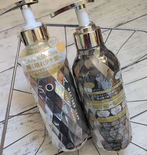 SOLA WEATHER CARE (ソラ ウェザーケア) クリスタルシャンプー/ヘアトリートメント リペアタイプどんな天気の日も輝く晴れツヤ髪へ☀️.°雨の日は湿気をブロックして髪の広がりうねりを抑える✨晴れの日には髪にもUV対策を✊🏻(紫外線による乾燥対策)ヒートケア成分も配合なのでドライヤーで乾かしながら、より美容成分を髪へ届けます︎︎👍ハピネスペアーサニーの香りはほのかな甘さと深みのある香りでシャンプータイムも気分よく泡立ちは滑らかで泡で包み込むような感じで洗うことができ、トリートメントも柔らかなテクスチャーで馴染ませやすく流した瞬間からスルントした指通りに
