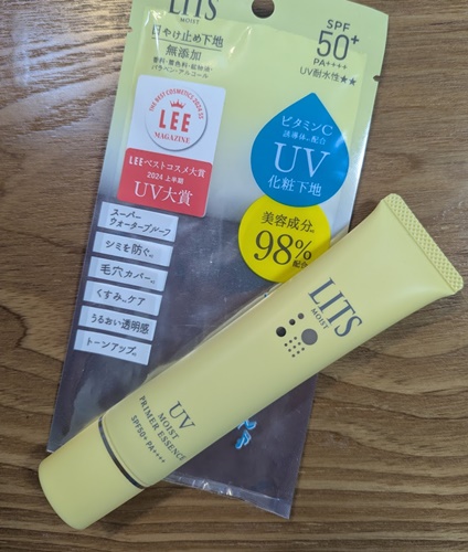 LITS モイストC UVプライマーエッセンスSPF50+ PA++++ スーパーウォータープルーフなのに、え?乳液だよね?ってくらい軽いテクスチャーの潤い感!ホントに日焼け止め!?って思う化粧下地なんだけども、ストレスの無さに私は驚いた本当にスルーって滑らかテクスチャーキシキシ感とか重さとかなくてしっとりせっけんて落とせる処方トリプルビタミンC(全て整肌成分)配合のスキンケア発想のUV下地!日焼けによるしみ、ソバカスを防ぎ、メイクアップによるトーンアップ効果はとても自然まさに日中用美容液と表記も納得の使用感のUV下地ネイチャーラボ様からいただきました