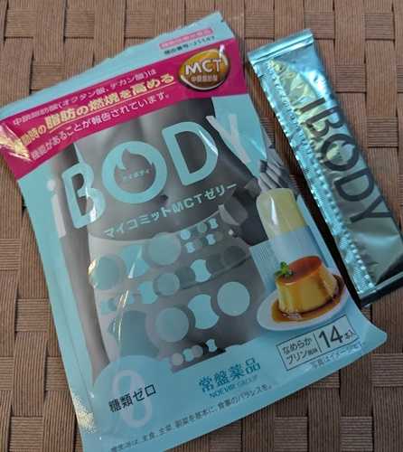 iBODYマイコミットMCTゼリーそのまま手軽にサッといつでもどこでも持ち歩いて食べられるスティックゼリー香り豊かなプリン風味のゼリーでとっても美味しく食べられます︎︎👍MCTオイル(ココナッツなどに含まれる中鎖脂肪酸1.6g)2g配合した機能性表示食品なんです✨糖質ゼロでコラーゲンペプチド配合(コラーゲンを低分子化したもの)・【機能性表示食品】・届出番号J1147・本品には中鎖脂肪酸(オクタン酸、デカン酸)が含まれます。中鎖脂肪酸(オクタン酸、デカン酸)は運動時の脂肪の燃焼を高めることが報告されています。・本品は、特定保健用食品と異なり、機能性及び安全性について国による評価を受けたものでありません。届け出られた科学的根拠等の情報は消費者庁のウェブサイトで確認できます。・医薬品ではありません。・食生活は、主食、主菜、副菜を基本に、食事のバランスを。常盤薬品さんのブログリポーターに参加中です♪