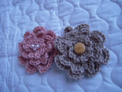 おはようございま~す 今日も暑くなりそうですね さてさて、またまたコサージュですが 今回はこちら 編み編みコサージュです ほんのちょっとした時間に出来るコサージュ作り、はまってます だけど、使うものは同じもの・・・作り過ぎないようにしなきゃ 同じ編みかたでこちらも作りました はじめはコサージュ予定だったけど・・・ 使用頻度を考えて、コースターになりました ちょっと微妙なかたちかな 自宅使用なので気にしない気にしない 編み編み楽しっ ではでは今日はこの辺でフーでした