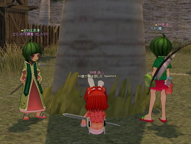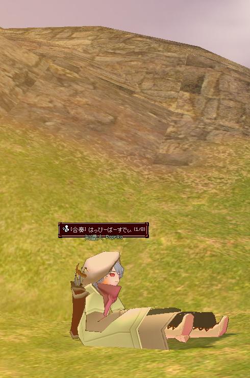 お久しぶりです! とはいえ、日記の間があくのはいつものことですがw マビノギももうかれこれ1週間とか入ってなかったかもしれませんね~。 何してたかっていえば、体調を崩してたり、仕事が・・・だったり、今週末に向けて暗記しなくちゃいけないことがたらふくあったり、何やらわたわたしておりました。 ケータイで他の方々の日記をチェックしながら悲しみに暮れる毎日でした・・・。(誇大広告あり。) で、本日は久々のお休みっ。 週末の・・・から現実逃避したくなりまして、マビへ~。 昼間だというのに黄色い人いらっしゃいまして、短時間の予定だったので、コールで遺物発掘なんぞしながらおしゃべりしておりました。 一段落して、鑑定をしてもらっていると、雷雨がっ。 ここぞとばかりに荷物逼迫中のハーブを調合。が、マナハーブが足りなくなり、ペットを呼び出してぶちぶちと。 その間もおしゃべりは続いていたのですが、どーやらどこかで監視されている模様! あたりを見回すが、気配なし。 でも、会話からすると見てる・・・。 ・・・こわっ。 ・・・・・・・・・・。 あ゛っ。 そこかよっ! さて、これから気晴らしにINするべきか、それとも書類とにらめっこするべきか・・・。葛藤は続く・・・。