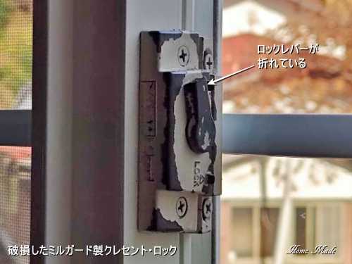 岡山県のお客様から、引き違いサッシのクレセント・ロックの入手を出来ないかとの問い合わせを頂きました。輸入窓は、ミルガード(Milgard)製の樹脂サッシ。写真がそのクレセント・ロックですが、白かった塗装が少しベージュっぽい色に変色して、塗装も随分剥げています。材質は鉄の鋳物で固いのですが、衝撃に弱く鉄のように粘りもありません。ですから、継続的に無理な力が加わると、曲がるのではなくこちらのロックレバーのようにポキッと折れてしまいます。折れた原因は、恐らく左右の建具の噛み合わせ位置が悪く、回転するクレセント・ラッチとロック・キーパーが正しい位置関係になっていないのだろうと思います。その為、無理に鍵を掛けなければならず、その力で突然レバーが折れてしまったということでしょう。ロック金物を交換するのはいいのですが、左右の建具の建て起こしを調整しなければ、そのうちまた壊れてしまうかも知れません。輸入住宅の新築やメンテナンス、コンサルやコーディネートをして欲しい、家全般のチェックやアドバイスを受けたいので、現地調査を希望するという方はお問い合わせ下さい。全国どこでもご相談を受け付けます。尚、相談や問い合わせの前には、日々更新する記事をいくつかご覧の上適否をご判断願います。また、これらの記事が、多くの皆さんのお役に立てて頂ければ幸いです。