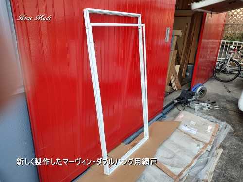 宮城県のお客様からご依頼頂いている輸入網戸のフレームが完成しました。輸入サッシは、マーヴィン(Marvin)製のダブルハングサッシ。幅70cm x 高さ1.4mという大きさのものが3枚と、幅70cm x 高さ1.3mというものが1枚、合計4枚作りました。普通のサッシからすると大きな窓に網戸を装着するようで、長いアルミフレームを輸入しなければならず、海外からの送料等の経費も結構掛かりました。それは、薄いアルミ材で出来た繊細なフレームですから、輸送途中で折れ曲がってしまったりしたら使いものになりませんから、梱包費や長いものに対する海外送料が割高になるからです。また、既存のサッシにちゃんと装着出来るようにしなければなりませんので、カットする寸法が1mmでも違ってはいけません。また、網戸を固定するピンの位置なども、慎重に穴明けする必要がありました。それにマーヴィンの網戸は特殊な形状になっている為、作るのに結構な手間が掛かります。一旦作ってからも、ヤスリなどで長さ調整を行って、また組み直すといった工程を繰り返しましたので、網戸1枚のフレームを作るのに数日掛かるといった具合です。根気と神経を遣う仕事でしたが、あとはセンターフレームを中央に装着して、グラスファイバーの網を張るだけです。輸入住宅の新築やメンテナンス、コンサルやコーディネートをして欲しい、家全般のチェックやアドバイスを受けたいので、現地調査を希望するという方はお問い合わせ下さい。全国どこでもご相談を受け付けます。尚、相談や問い合わせの前には、日々更新する記事をいくつかご覧の上適否をご判断願います。また、これらの記事が、多くの皆さんのお役に立てて頂ければ幸いです。