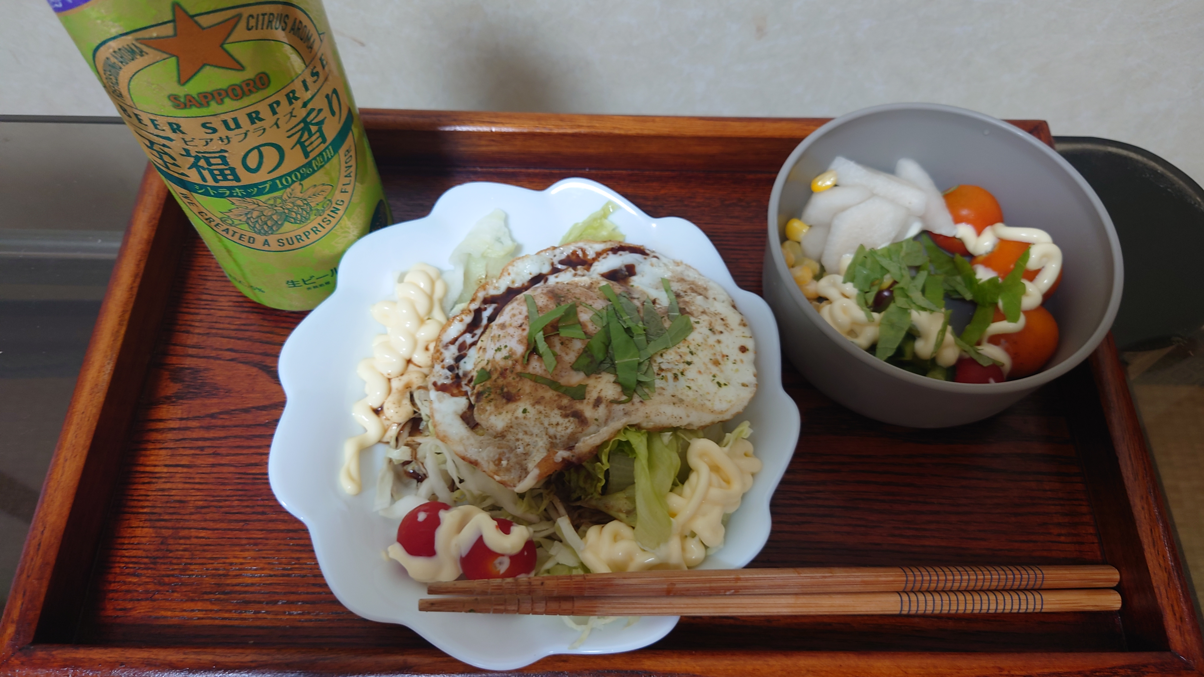 初大葉を食べました。刻みお新香サラダと目玉焼き