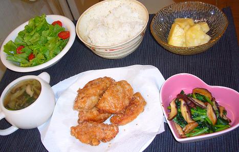 こんにちはっ(´∀`)いつもご覧いただきありがとうございますコメントやメッセ、BBS書き込みもとっても嬉しいです(・´з`・)こんな私ですが、どうぞ仲良くしてください起きたら、梅雨時期に貴重な太陽様がぁぁぁ!!急いで、洗濯機まわして干したーーーっ⊂(^ω^)⊃ セフセフ!!1時間くらいで⇒⇒になっちった。(´・ω・`)ショボーンでもまっ、ちょっとでもに照らされたからいっか。しょうもない、夕飯をまたも遅れてアーーップ ズサ━━━━⊂(゚Д゚⊂⌒`つ≡≡≡━━━━!!たぶん先週金曜日のご飯●鶏肉のから揚げ●シタケとほうれん草のバターソテー(炒めじゃなく、あえてソテーw)●サラダ●シメジとニラとか入れたニンニク風味にスープ●只今、大量にあるパイナポー旦那さん、このから揚げの量と同じ位おかわりしてたよw太らないのが憎い(#゚Д゚)ゴルァ!!土曜日は、日本vsオランダ見ながらピザでしたw昨日(日曜日)の夕飯●トマトと牛肉煮●タケノコとシメジ、ネギの適当炒め●サラダ●まろやか豆腐ちょっwwご飯の量多すぎ!!!!いつもは私がよそってるんだけど、昨日は珍しく、二人一緒に食べる(平日は、旦那遅いので先に一人で食べますw)からご飯は旦那によそってもらったら。。。なんじゃこの量!!しかも、ご飯茶碗じゃなくて味噌汁とかの器に盛ってるしwwwでは、またε≡≡ヘ( ´Д`)ノ最後までご覧いただきありがとうございました☆ランキングに参加中です。ポチっといただけたら嬉しいです(* ^ー゚)別ウィンドウが開きます。 オシャレブロガーさんの着画も沢山あって、とても参考になりますよ♪