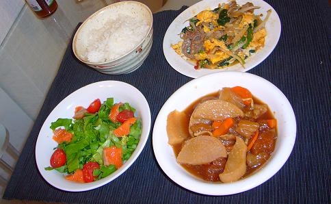 こんばんはっ溜め込むと、ズルズルいっちゃうんで。。。ちゃっちゃっっとアップですε≡≡ヘ( ´∀`)ノ昨日の夕飯●牛スジ煮込み●牛肉と野菜と卵の中華炒め●サラダ今日の夕飯●昨日に引き続き牛スジ煮込み(残り物w)●豚肉とトマト、ガーリック炒め(イタリアン風味w)●サラダ和、洋ごちゃませーーっぶはーーΣ(・ё・;) ちなみに、最近は旦那サンが牛スジ煮込みがブームらしく週一で要求してきますwただ、残るから必ず2日連続で出てきますがΣ('∀`;)し、しかしスゴい量ですねwww最後までご覧いただきありがとうございました☆ランキングに参加中です。ポチっといただけたら嬉しいです(* ^ー゚)別ウィンドウが開きます。 オシャレブロガーさんの着画も沢山あって、とても参考になりますよ♪