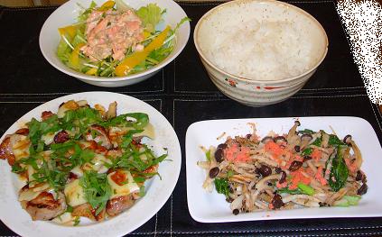 こんにちはっ( ゚ρ゚ )アゥーまたも溜め込んでしまたーよ( ´_ゝ`)とりあえず、月曜日の夕飯●パプリカとサーモンサラダ●鶏肉のシソチーズのっけ●キノコと大根、小松菜の明太子炒めサラダにのっかてるサーモンは、ちょこっとだけ冷凍ストックしてたのをレンジで解凍モードでチンしたら、量が少なすぎて解凍通りこして、鮭になってましたwwwそして、火曜日の夕飯●豚肉とシメジ、ネギの中華炒め●ゴーヤチャンプルー(ゴーヤが見えないけどw)●サラダ昨日の夕飯●シメジとニラのニンニク入りスープ●まろやか食感のお豆腐●鶏肉コンソメで味付け、チーズとトマトをたっぷりのっけとまぁ、毎日適当メニューのオンパレード・・・( ゚д゚)写真は旦那サンの分だから、相変わらず量が半端ないね・・・( ゚д゚)最後までご覧いただきありがとうございました☆ランキングに参加中です。ポチっといただけたら嬉しいです(* ^ー゚)別ウィンドウが開きます。 オシャレブロガーさんの着画も沢山あって、とても参考になりますよ♪
