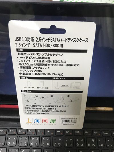一旦今のOSをSSDにコピーするためにHDD用のSATAケースを購入。