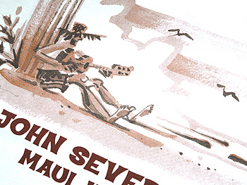 サンサーフ S72724 John Severson ”SURF MUSIC” ロングボードにもたれて海を見ながらウクレレを弾くハワイアンをステッチにした作品。 スローな雰囲気とメローな感じがなんとも心地良い。ドノヴァン、ジャック・ジョンソンな雰囲気♪