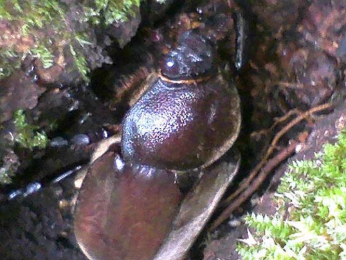 近所の森にカナブン数匹と一緒に樹液を味わっていたメスのカブトムシ。