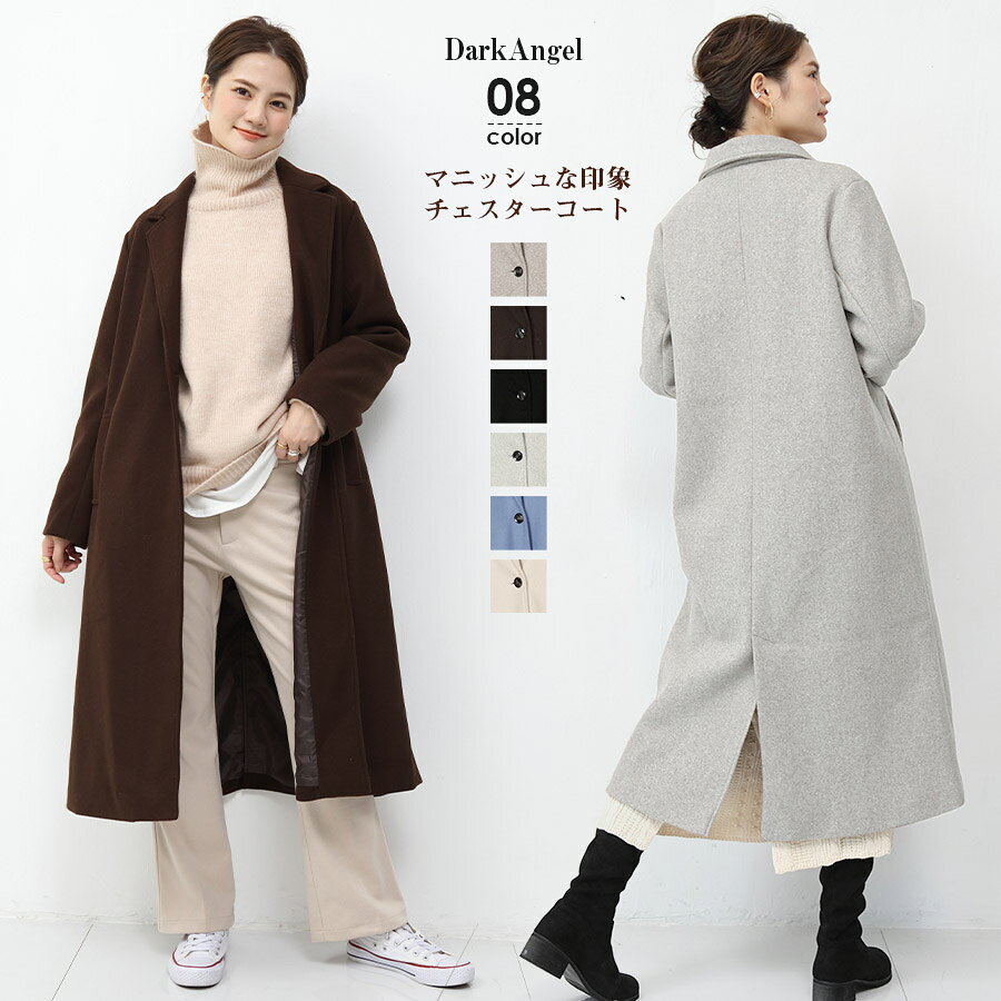 <クーポン利用で1,000円OFF> チェスターコート ロング 冬 レディース メルトン素材 大きいサイズ 防寒 ブラック 黒 グレー ベージュ モカ ブラウン パープル【BIGシルエットチェスターコート】【冬 新作】【2020年12月新作 コート 】DarkAngel/ダークエンジェル