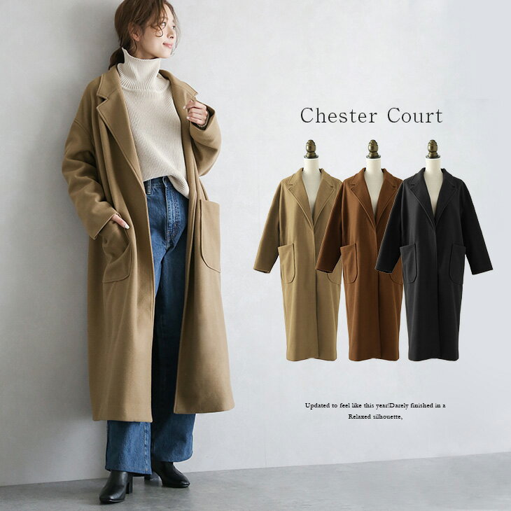 ≪11月11日一部カラーのみ再販≫洗練された大人の魅力をプラスするチェスターコートSC/M/Lサイズ [低身長向けサイズ対応]ジャージーメルトンロングチェスターコート レディース/[2020年秋冬新作]