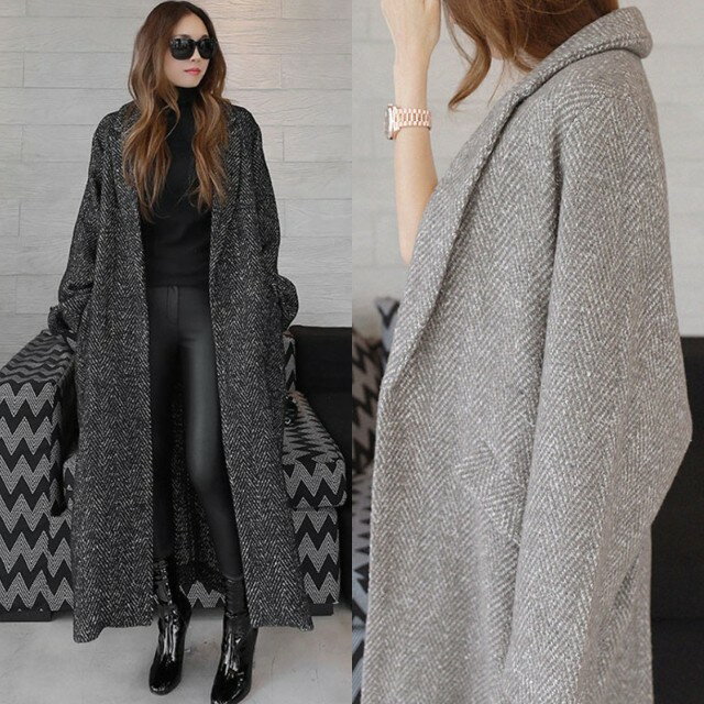 [一部即納] ロングチェスターコート レディース 大きいサイズ アウター ヘリンボーン 超ロング オーバーサイズ 冬新作 秋冬 韓国