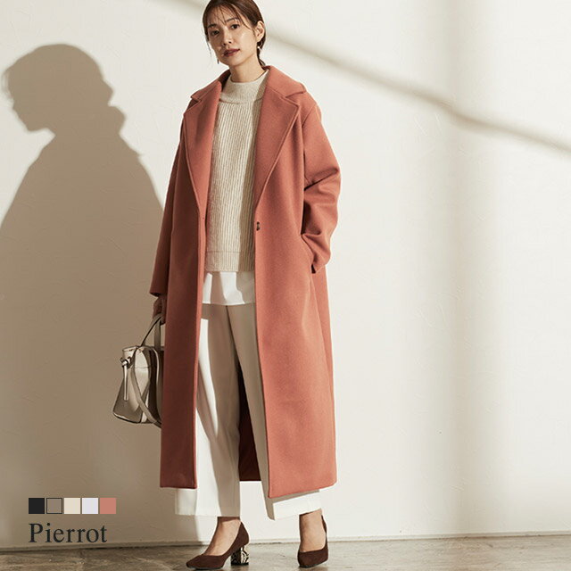 ≪あす楽≫【2020A/W最新作!送料無料】メルトンロングチェスターコート ☆ コート チェスターコート ロングコート メルトンコート メルトン 高見え 上品 レディース 20代 30代 40代 ピエロ pierrot