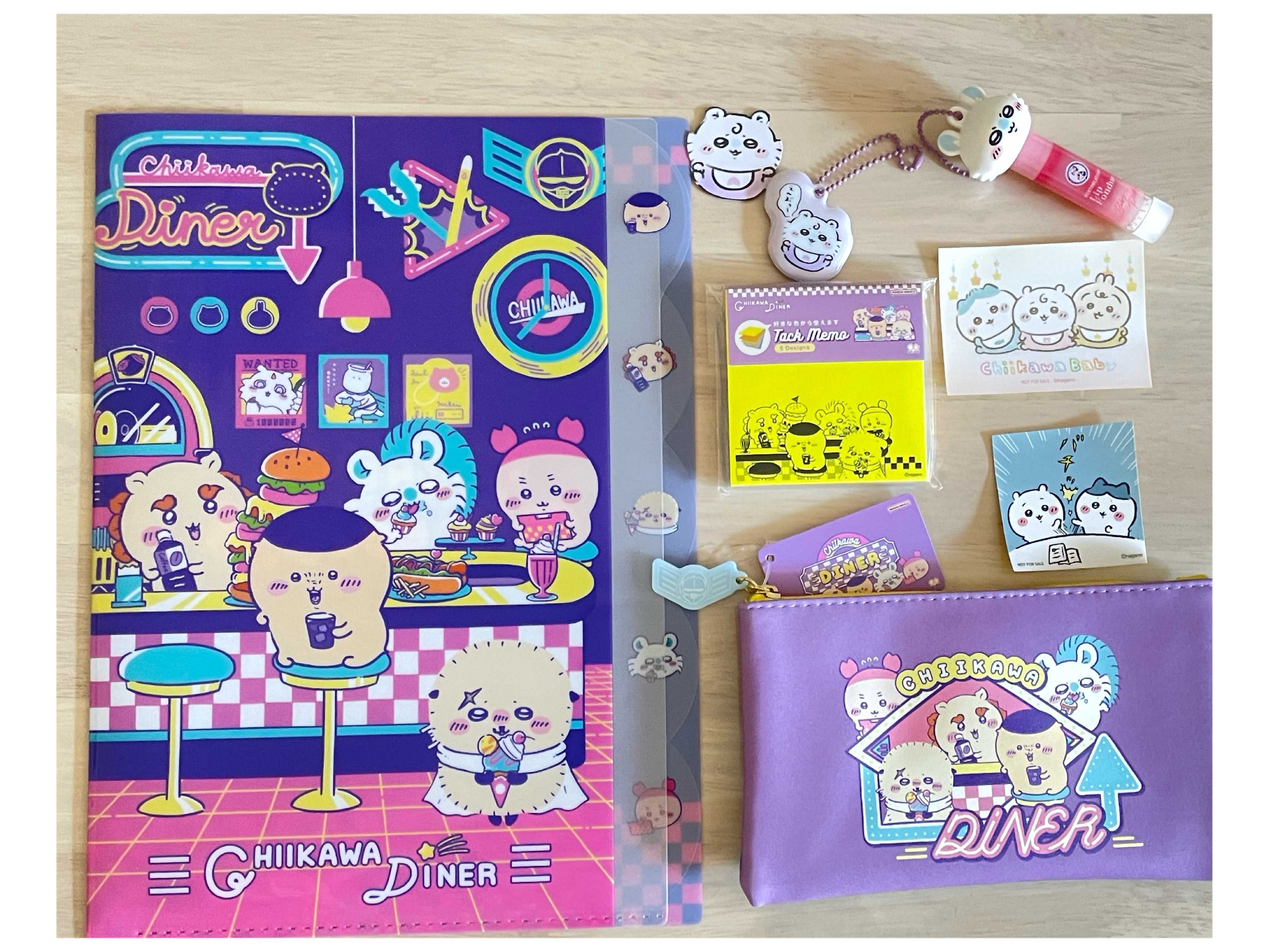 久しぶりの置き画です😄新作の文具✏️ちいかわディナー🍽️を購入しました。カラフルで可愛いですー💜娘はモモンガ推し💜ちいかわ(Chiikawa DINER)第13弾[ディナー]A4ダイカットクリアファイル5P(5ポケット付き)(S2175622)ペンケースは裏面もキラキラで可愛いです。ちいかわ(Chiikawa DINER)第13弾[ディナー]フラットぺンケース(ペンポーチ/筆箱)(S1430254)ちいかわ(Chiikawa DINER)第13弾[ディナー]付箋メモ5C(ふせん5色セット)(S2851059)ちいかわ(Chiikawa DINER)第13弾[ディナー]シャープ&2ボールぺン(シャープペンシル+2色ボールペン)(S4658850)