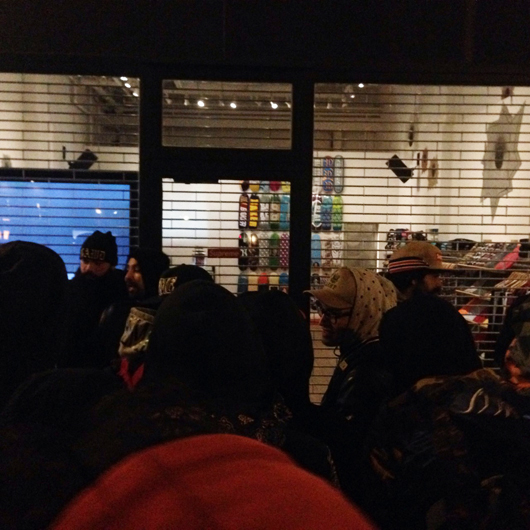レビューが遅くなってしまいました。。昨日はオンラインにトライした後にお店を見に行ったのですが、奇跡的にリストの名前が生きてたのでなんとかお店に入る事が出来ました!でもジャケット類、プルオーバー、ショーツなど何もなく、買えたのはTシャツ2枚のみでしたw一応前日の夕方から並んでリストに名前書いたのにな~。数が少なすぎですね。。僕はまだオンラインで買えてたので良かったのですが、一緒に並んだ友達はずっとお店の前に居たので、トータル20時間ぐらい並んでTシャツ2枚しか買えなかったって事になります。。マジで悲惨ですね(泣)次回から並ぶの辞めようかなと本気で考えてしまいます(泣)今行かれてる方、オンラインでチャレンジする方が居ましたら頑張って下さい!無事に買える事を祈ってます!