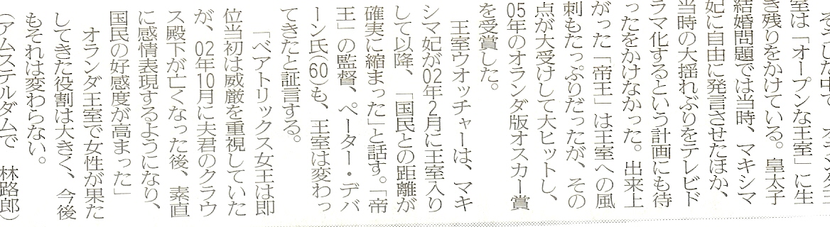 元旦のエントリーコメント欄において,新年のご挨拶を下さった方々,あちがとうございました。 本年もよろしくお願いいたします。 <読売変節?> 新年早々,変な記事が読売に出ていました。記事A 記事B これらの記事は読売新聞の平成19年1月3日朝刊の9面にあったもので,『王室新時代』と称する,世界の王室を扱う特集の記事です。今回は『開かれた女帝の国』と題してオランダ王室が扱われていました。なお,記事Aは特集の本記事の一部,記事Bは特集記事の付属記事です。 ここで記事Aだけが掲げられていただけならば,まだ客観的事実を述べたものとして特段目に付くような記事ではなかったでしょう。問題はこの記事が記事Bと一緒に掲載されていることです。 記事Bをご覧ください。題名は『継承権 欧州では男女平等の流れ』とされています。その上で,この記事は一番下の段落の最初の行で,日本の皇室で皇位継承健について議論があるということに言及しています。 自分はこれを見たとき「日本の皇室も欧州の王室に倣って,女性にも継承権を与えるべき」というありがちな主張を展開する論調の記事のように読みました。 この記事が付属しているということを前提に先のAの記事を読むと,そこには「皇室はもっとオープンになるべき」というこれまたありがちな主張をするかのような記事に読めます。しかも題名が『開かれた女帝の国』。 読売は女系容認に流れたんでしょうか。これらの特集記事だけでは勿論断言できません。 しかし,最近この新聞の「主筆」と称するボケ老人は,アサヒと共闘宣言をするなど,目だって左翼的。もしかしたら,読売は今年から女系容認に乗り換える意向なのかもしれません。確か,昨年は慎重論のほうだったと思ったのですが。 読売がこれ以上,左の方に舵を切るようならば,不本意ながらもゴミウリとの名を献上せざるを得なくなります。 <ちょっとした資料> 皇室典範改定の議論は,秋篠宮悠仁親王殿下の御誕生により下火になっていますが,一応日本で一番読まれている新聞の変節が気になったついでに,少し資料を提供させていただきたいと思います。皆様のお役に少しでも立ったのならば,これに勝る喜びはありません。 次の記事は占領下で皇室典範改定作業が進められていた折,そのメンバーの一人としてGHQと折衝に当った井手成三氏の論文の一部です。その立場ゆえ,この方の発言は立法担当者に準ずるものとして解釈資料として重要であると考えます。 「皇室典範は,・・・普通の法律の一つであって,国会は,皇位の継承について,『世襲のものであって』の枠内で妥当と信ずるところにより条項を定め得ることは当然である。 しからば,憲法第二条の『世襲』とはいかなる意味に解することが正しいのであろうか。憲法第二条は,いかなる考えで,『世襲』の文字を使ったのであろうか。 憲法が定める天皇制は,もちろん,現天皇を念頭においた天皇制であり,抽象的な天皇制を構想したものでないことは,万人の認めるところであろう。憲法のこの『世襲』も,わが国において,古来伝承し来たった皇位継承の法則と無関係に規定せられたものではない。一つの予想された観念に基づいて表現せられているものと考えなければならない。 『世襲』という文字は,文字面のみからは,概念的には,『単純に血統のみに基いて一定の血縁関係にある者が当然に皇嗣となり皇位を継承する主義』と言えよう。この抽象的な概念のなかで,言はば思いつきの皇位継承を皇室典範の制定改正で定め得るという解釈の余地を持つものであると考える者があれば,それは,正鵠を得たものとは言えない。 すなわち,わが国における皇位の継承は,連綿として一定の内容をもち,不文律に伝承し来たった事実であり,その事実たる皇位の世襲制を率直に認め,それを眼中において,新憲法においても,皇位の世襲制を明記したものと解するのが正当である。 このことに関連して,新憲法制定議会,詳しく言えば,憲法改正案の貴族院特別委員会において佐々木惣一博士の,この世襲は,万世一系を意味するかという趣旨の質問に対し,政府側として,金森国務大臣より,旧憲法と異なるところなしとの答弁があったことは,大いに参照せらるべきものである。 今後,皇室典範改正の議が生ずるようなことがあった場合,この万世一系の原理,皇室に伝わり来たった皇位継承の不文法を破り,越えることはできない。」(愛知学院大学論叢法学研究12-2 p2~3。なお,注は一部後掲のものを除き他は省略) 井手氏は,この文章の注において次のようにも述べています。 「(注2) 我が国における皇位の継承について,旧皇室典範の義解には (一) 皇位を践むは皇胤に限る。 (ニ) 皇位を践むは,男系に限る。 (三) 皇祚は,一系にして分裂すべからず。 とあり,このことは歴史上一の例外もなく続いてきた客観的事実に基づく原理であり,成文法では破りえない不文の法であると考えるべきである。」(前同書 p4) ちなみに,文中にある金森国務大臣の答弁は以下のとおり(前同書同頁の注より編集し