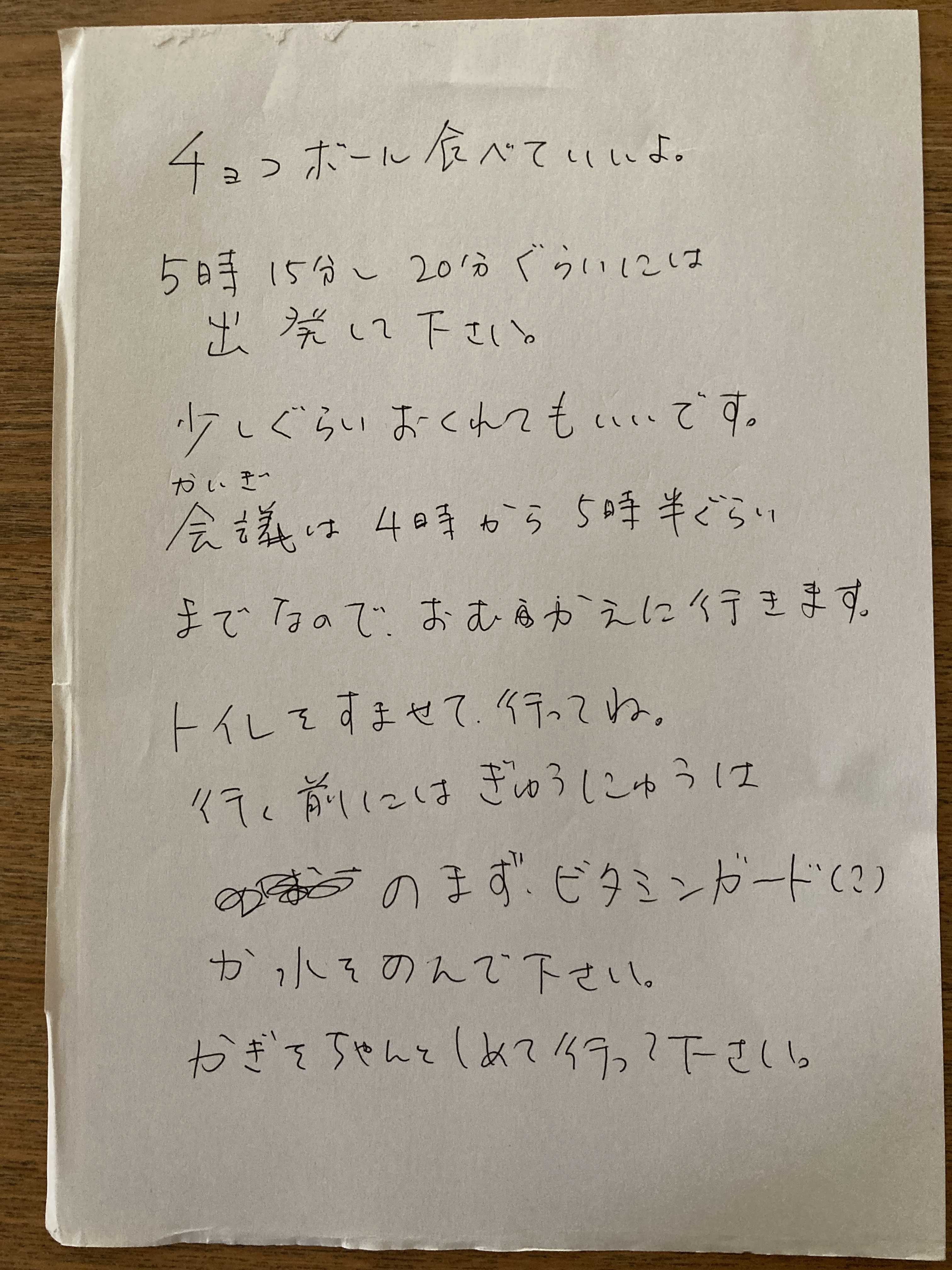 十数年前、子どもが小学生の時に書いたものでしょうか。習い事がある日の注意事項?って感じですね。なんか懐かしいというか、もっと字を上手に書いたら?って自分にツッコミを入れたい🤣昔から子どもはチョコボール大好きです、今ももちろん。いちご味が一番好きみたいです。森永 チョコボール あったらラッキー金箔 20箱森永 チョコボール 20個入 { 駄菓子 お菓子 チョコ チョコレート ピーナッツ いちご キャラメル }{ 子供会 景品 問屋 お祭り }[25C04]森永 チョコボール (20×3)60入 (チョコレート) (Y80) (3つ選んで本州送料無料)チョコボール いちご 25g×40個 森永製菓 ※クール便利用選択でクール便発送可能です別途330円森永製菓 チョコボール キャラメル 28g×20箱