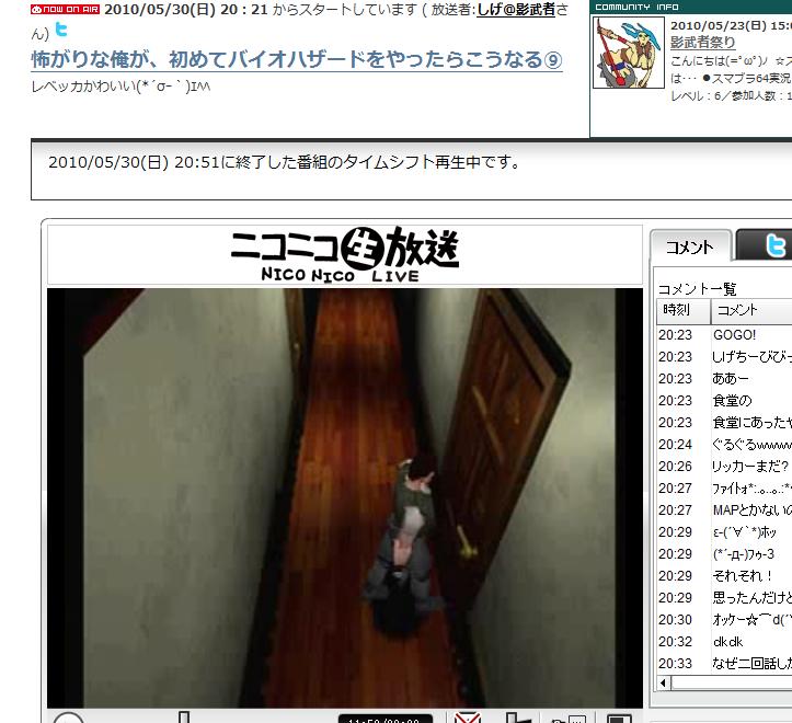 こんにちは(=゚ω゚)ノ たかしげです。どうも。日本vsイングランドおしかったですね~~さて!ココ最近RSにはまったくINしていません!たまにWIZが足りなくて急遽呼ばれるんですけどね!本題に入りますとですね最近ニコ生にはまっております!喋りながらゲームするのって最初恥ずかしかったけど慣れてくると別に普通ですねwんでニコ生してるゲームなんですがバイオハザードですヽ( ・∀・)ノ http://live.nicovideo.jp/watch/lv18213894↑がタイムシフト動画になります※プレミアム会員じゃないと見れないっぽい?そしてこちらがコミュニティになります(=゚ω゚)ノ http://com.nicovideo.jp/community/co349504↑がコミュニティのURLですm9(^Д^)とりあえずバイオクリアしたい><初めてやるから操作とかメチャクチャでめっちゃ怖がりだけどがんばります;;