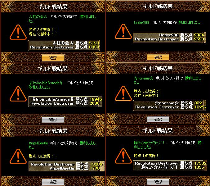 最近RS萎えてます。影武者0310トキモリ秘密Lvになったけどあの秘密だるいし、もう通わないかな~wてことで・・・制限本気出すヽ( ・∀・)ノ 無制限のほうは殆ど活動しなくなると思います。しばらくは制限漬けになりそうですね!ココ最近のGv結果(順番適当)6つのギルド様ありがとうございました!今日エンペラーでもGvがあったんだけどやっぱり霊術師すごい!禁止・・・とまでは言わないけど1つのギルドに1人は霊術師ほしいですね!ってことでレボデスでも霊術師募集しようかしら(*´σー`)WIZさんBISさん火力さんも募集中です!ヽ( ・∀・)ノ 以上!久しぶりの更新なのに適当ですみません!次はまじめに更新します(;´Д`)y─┛~~