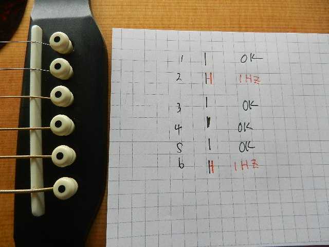 ●既存のサドルからオクターブチューニングがズレている弦とHZを測定します