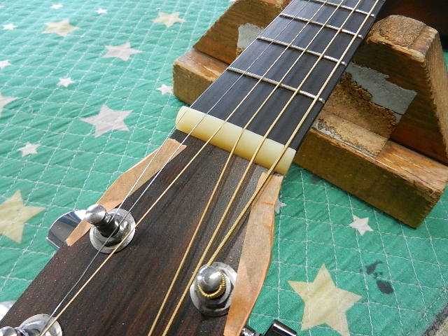 今回は消耗品でも有るナットの弦溝が深くなって、1フレットのクリアランスが