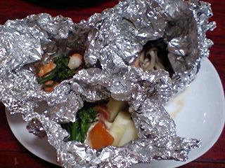 ホイル焼き、手羽元(昨日のBBQ残り)