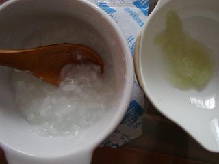 離乳食を開始しました。 離乳食の前段階として、 2週間麦茶を飲んでいたベビー。 木のスプーンから上手に飲めるようになってきていました。 そして、デビューはお粥からです。 <10倍粥作り> 和光堂ベビーフード 栄養マルシェ さつまいもとかぼちゃのお粥 80g×2パック 炊き立てご飯から、 小さじ3杯ほどのごはんをとって、 お水90ccとお鍋へ。 ご飯粒を崩しながら煮立てて、しばらく放置。 (↑火を通すため) ベビー用すり鉢でやさしくご飯粒をつぶす。 最後に茶こしで裏ごし。 できたお粥は今日の分をとりわけ、 残りは製氷皿に流し込んで、冷凍室へ。 凍ったら、製氷皿から取り出して、 冷凍用ジッパーに入れて、冷凍庫へ。 <初めてのお味> せっかくなので、ビデオを回しました。 ベビーはビデオ目線。 いや。。。ご飯見てね。 ご飯食べようね もぐもぐ美味しそうに食べるふりをして、 ベビーが興味を引かれたところへ、 スプーンをおくちへ… もぐ… もぐもぐ… ? もぐもぐもぐ 食べてくれました さすが、食いしん坊の母を持つだけあって、 食欲旺盛なわが息子。 スプーン1さじ分を、 4,5回に分けてちょっとずつあげましたが、 無事完食。 よかったです♪ <その後> お通じも問題なしでした。 <離乳食のために用意したグッツ> お皿と木のスプーンがあれば大丈夫かな? と思っていたのですが、 いくつか買い揃えました。 ベビー専用で、 こんなんがあると、役に立つと思います 注:映像はイメージです・すり鉢、すり棒(ベビー用のを義母からもらいました)ベビーテディーズ◆すり棒付すり鉢・製氷皿(100円ショップのシリコーンタイプが少量だし、扱いやすかったです)フェローズ・製氷皿(小) K-285 (14ヶ取)・裏ごし器(最初の方だけだと思うので、100円ショップで茶こし買いました) 手がついていて大変便利!木目茶こし <食器等の消毒> 基本的に、それほど神経質になる必要はないようですが、 ミルトンにつけています。 ミルトンは哺乳瓶・乳首等赤ちゃんに欠かせない器具の消毒薬ですミルトン450mL 哺乳瓶消毒薬【dw202706】 以前、混合だったときに使っていたものが残っていたし。 この時期、衛生面に不安がありますからね。 アレルギーなのか、消化不良なのか、 食中毒なのか… 分からなくなっても困りますしね。 美味しそうに食べているのを見ると、幸せな気持ちになります