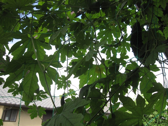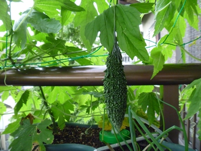 長い間ブログの更新が出来ずにいたこと、反省しかり・・・・早いものでもう9月も終わりです。今夏は、昨年ほどの猛暑ではなかったものの、節電等の影響か思った以上に暑かったように思います。夏の直射日光を避けるため、緑のカーテンを作った方も多かったようですね。私もベランダにゴーヤのカーテンを作りました。さほど大きなものではなかったけれど、結構いい日陰を作ってくれました。水やりは、【SIMERUSフロート】を設置。ゴーヤは2本。6号ちょっと大きめ位の鉢に植えています。(本当はもう少し大きな鉢の方が良いのだけれど、置き場所の関係で小さなものに・・・)【SIMERUSフロート】を鉢に1個ずつ。ちょっと心許ないけれど、一番小さな浮きで水がたくさん出るようにしたら、鉢が小さかったので、何とか大丈夫でした。2つの鉢で、7,8月の給水量は、一日ほぼ2L。2Lペットボトルを水タンクに加工して使っていたので、毎朝一回水を満タンにしたら、夜もしくは翌朝にからになるという感じ。2Lを多いと感じるかですが、通常の下から出るまでたっぷりの水やりでは、2つの鉢に水を行き渡らせることが出来ません(足りない!下から水でないし・・・) 朝一回この水やりを続けれたら、たぶん夕方には萎れて大変かわいそうなことになってる!! ゴーヤの実も収穫して、おいしく頂きました。夏の間本当にお世話になったけれど、そろそろ終了です。