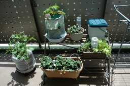 梅雨に入りましたが、ここ数日晴れてます。ベランダの野菜たちは元気です。特にガーデンレタスは、毎朝収穫して食べています。大葉も次々と葉が出てくるので食べるのが追いつかなくなるときがあります。※この他にも大葉の鉢があります ミディトマトもずいぶん大きくなりましたし、知人に頂いたバジルも順調に大きくなっています。今、我が家の野菜たちは洗濯物と共存しながら、ベランダで元気に育ってます。 ※水やりはもちろん【SIMERUS水やりテープ】です。※一番上の写真など、普通の水やりだと下のレタスたちに排水がかかってたいへん。 こんな風に2段に並べることはできません。 【SIMERUS】で下にほとんど水が出ないからできる置き方です。