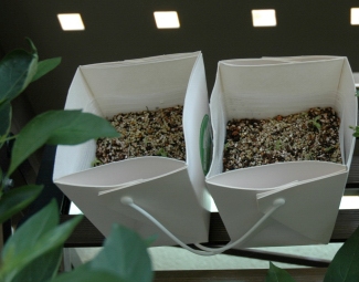 シルバーウィークもようやく終わりました。特に出かけることもなく、夏野菜の後片付けと秋野菜の準備をしてたら、なんとなく終わってしまいました・・・ ホームセンターに行くと、秋植えの苗がたくさん出ていました。その中でやっぱりありました!種まきセット!¥499サラダ菜など5種類くらいの中からサラダ水菜を買って帰り、早速種まきしました。 250mlの小さめペットボトルに【SIMERUS水やりテープ】をセットし、 新聞紙をかけて2日目、発芽しました。(種まき時には少し水をやってます)3日目になると、こんな感じ。 ペットボトルの水は、2日でほとんど無くなりました。プランターの底からは水が出ていません。これで間引きしながら、大きくしていきます 水やりは、ペットボトルの水を切らさないようにするだけ。水のやりすぎで芽をダメにすることもなく、汚れた水でベランダを濡らすこともありません。 水菜の他にもいろいろ種まきしましたが、それはまた次に。