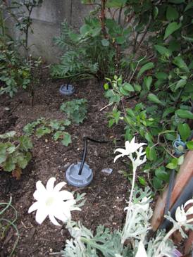 今日も寒いです。ここ数週間土日の天気がよくて、ずっとガーデニング作業をしたので、今週はちょっとお休み?してもいいかな~ 先週、これからの時期のために、庭の一部に自動水やり器を設置しました。 この周りには、バラやクレマティス、アルケミラモリスやヒューケラなど大切にしている植物が植わっているので、我が家の庭でも最重点ポイント?なので水やりにはかなり気をつかっています。 写真で一部が見えているのが【SIMERUSフロートVG】です。 【SIMERUSフロートVG】から周りに水が広がっていき、“軽く湿らせる”(感想側に近い好適水分領域)で常に管理されています。 ※昨年など猛暑の夏も一日中しおれることなく元気に生育していたのはこの管理が出来ていたからです。※通常の水やりだと、朝水をたっぷりやったところで夕方にはしおれてぐったり、最悪な場合水をやっても復活せず枯れてしまった花壇や鉢がたくさんありました。 使用水量はジョーロやホースでの散水に比べ無駄な水が出ないので3分の1程度で済む上、周りへの水の飛び散りもなく、プランターや鉢底から出る汚水でビショビショになることもありません。 もちろん【SIMERUSフロートVG】は庭への設置の他、大型のコンテナや野菜プランターに使えますので、来週あたり、トマトを植えた大型野菜プランターにも【SIMERUSフロートVG】を設置したいなと思ってます